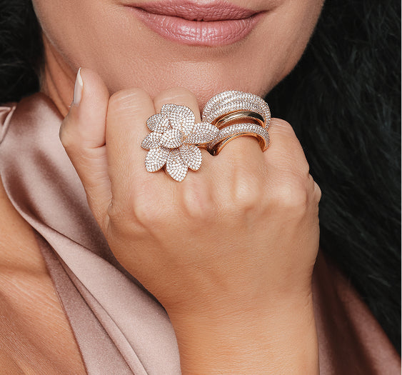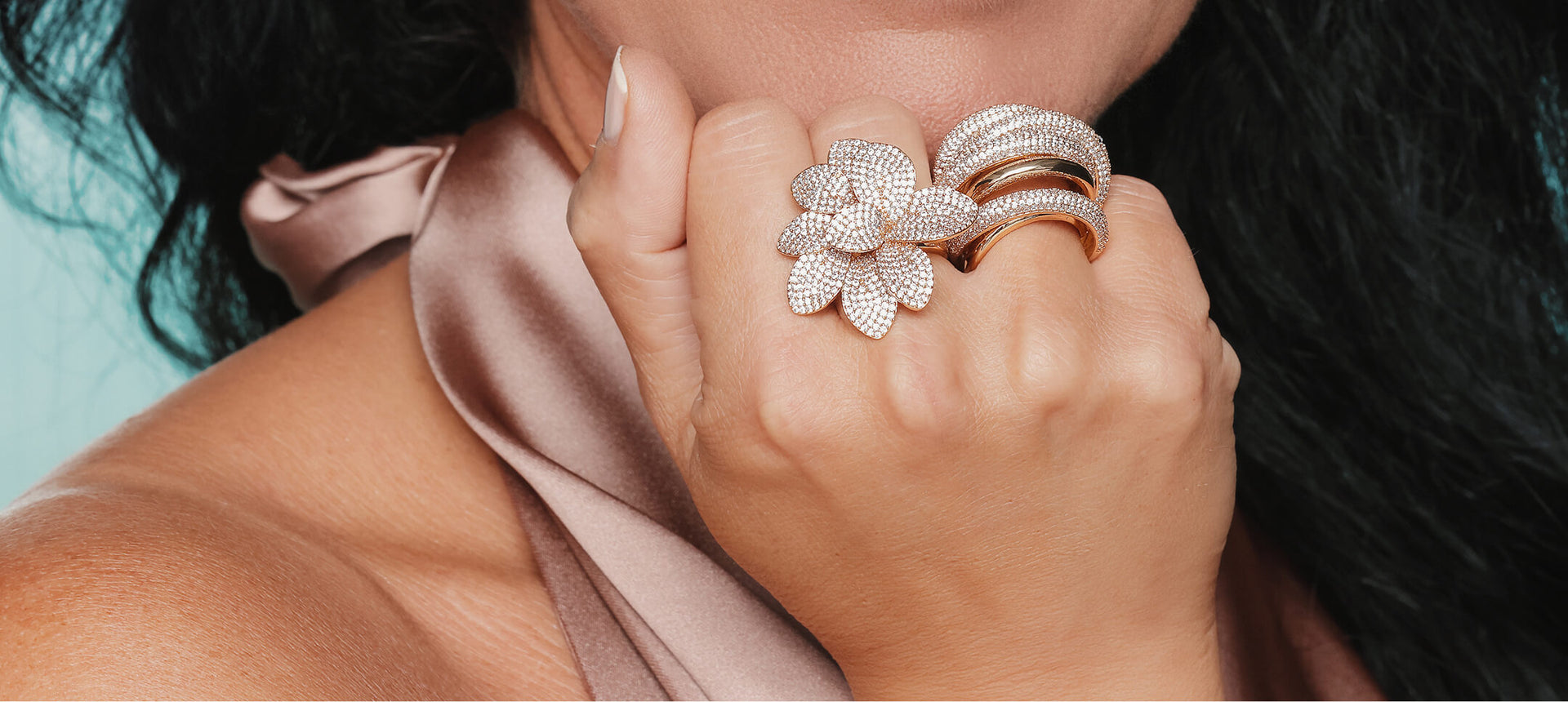 Our designs weave together classical, baroque, and maximalist forms with radiant silver, luminous gold, and delicate gold plating.