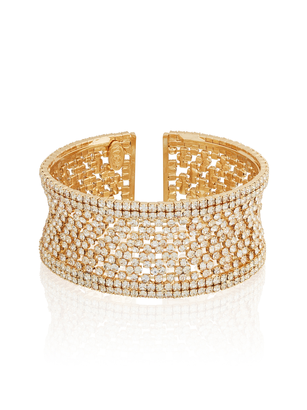 Open gold-plated bangle with pavé white zircon stones.