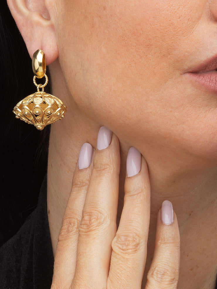 Handmade for comfort and ease of wear, these earrings draw inspiration from the traditional Sardinian button, an essential element of the island’s wedding costumes. Adorned with intricate patterns, they offer a touch of authenticity and richness, reflecting both local craftsmanship and Sardinia’s deep cultural heritage.
