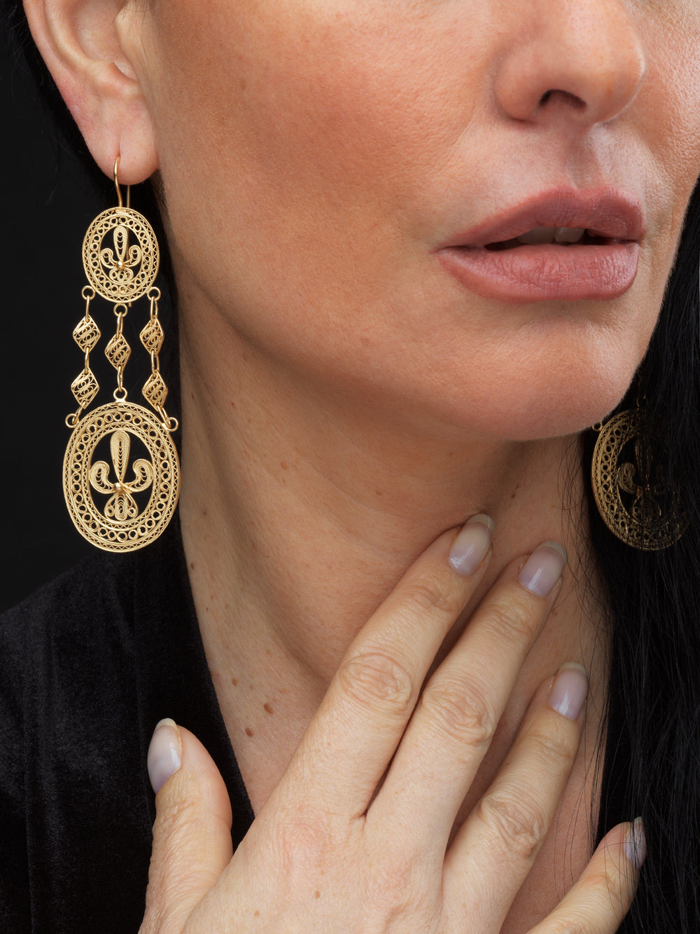 These earrings embody the quiet elegance of divine femininity, where every petal whispers a story of timeless beauty. Inspired by the lily’s delicate form and rich symbolism, they evoke purity, nobility, and the enduring grace of womanhood.
