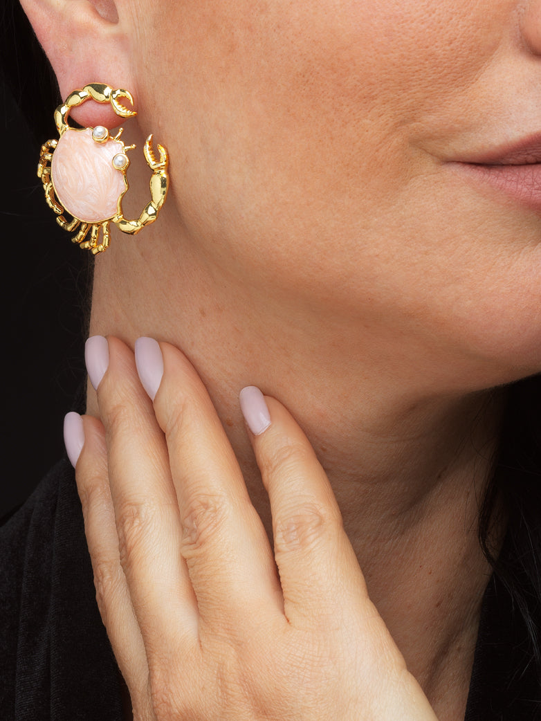 Each pair is handmade, drawing inspiration from the crab, a creature revered across cultures for its strength and symbolism. With its protective shell and distinctive sideways movement, the crab embodies resilience, adaptability, transformation, and the power of self-protection.