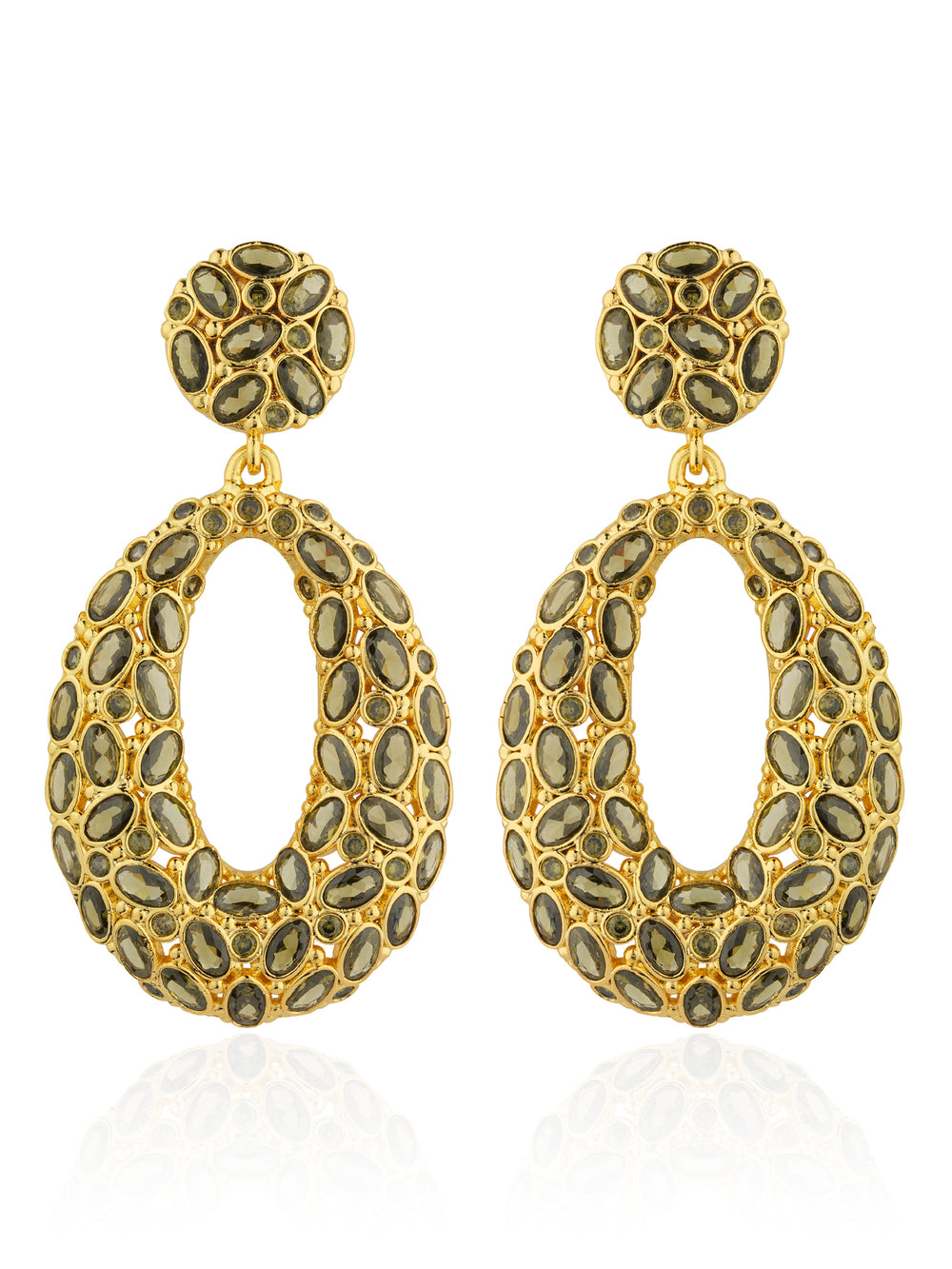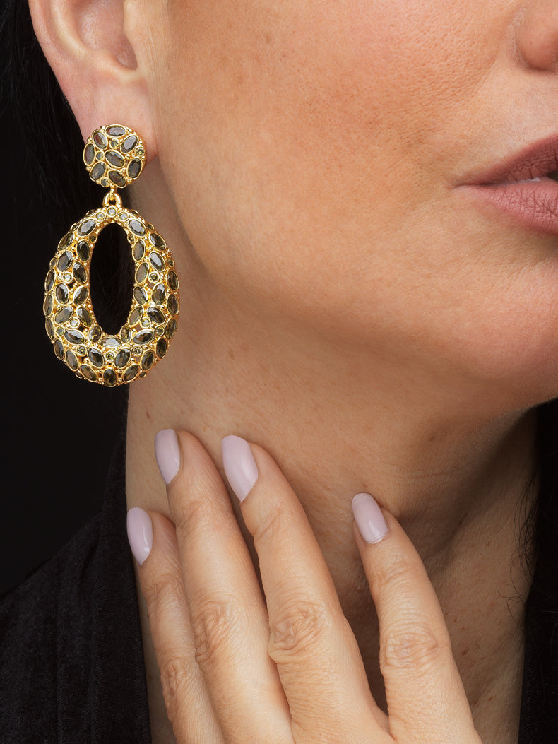 Boucles d'oreilles en alliage plaquées en or jaune 24 carats, ornées de zircons verts étincelants. Une déclaration subtile mais frappante, ces boucles d'oreilles allient élégance intemporelle et une touche de couleur vibrante. Les zircons verts ajoutent une étincelle fraîche et rayonnante, parfaits pour apporter un look sophistiqué pour toutes occasions.