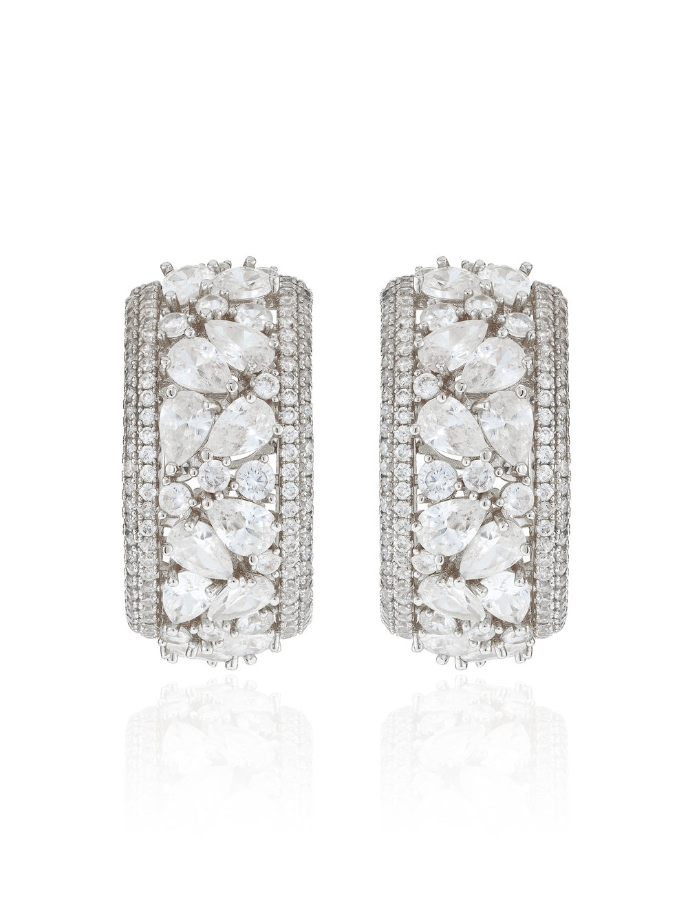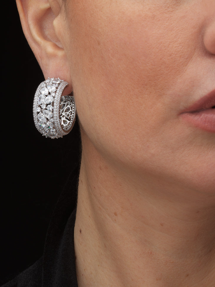 Rhodium-plated hoop earrings with full pavé of white zircons.