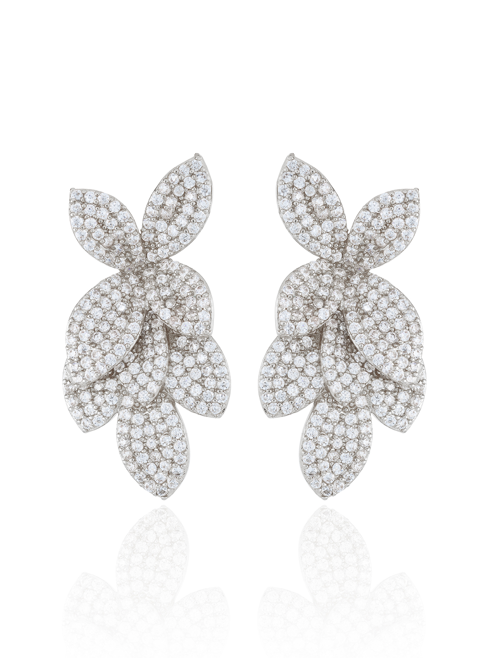 Elegant and radiant, these rhodium-plated earrings dazzle with a full pavé of white zirconia.