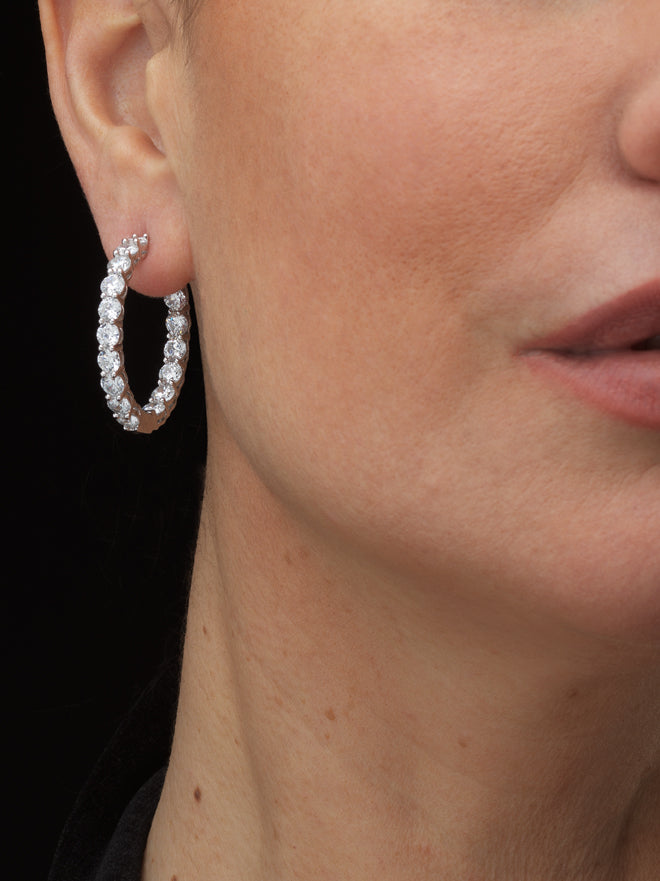 Graceful and luminous, these rhodium-plated hoops dazzle with white zircons that catch the light just so.