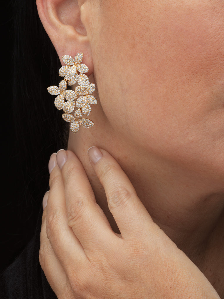 Gold-plated stud earrings with full pavé of white zircons.