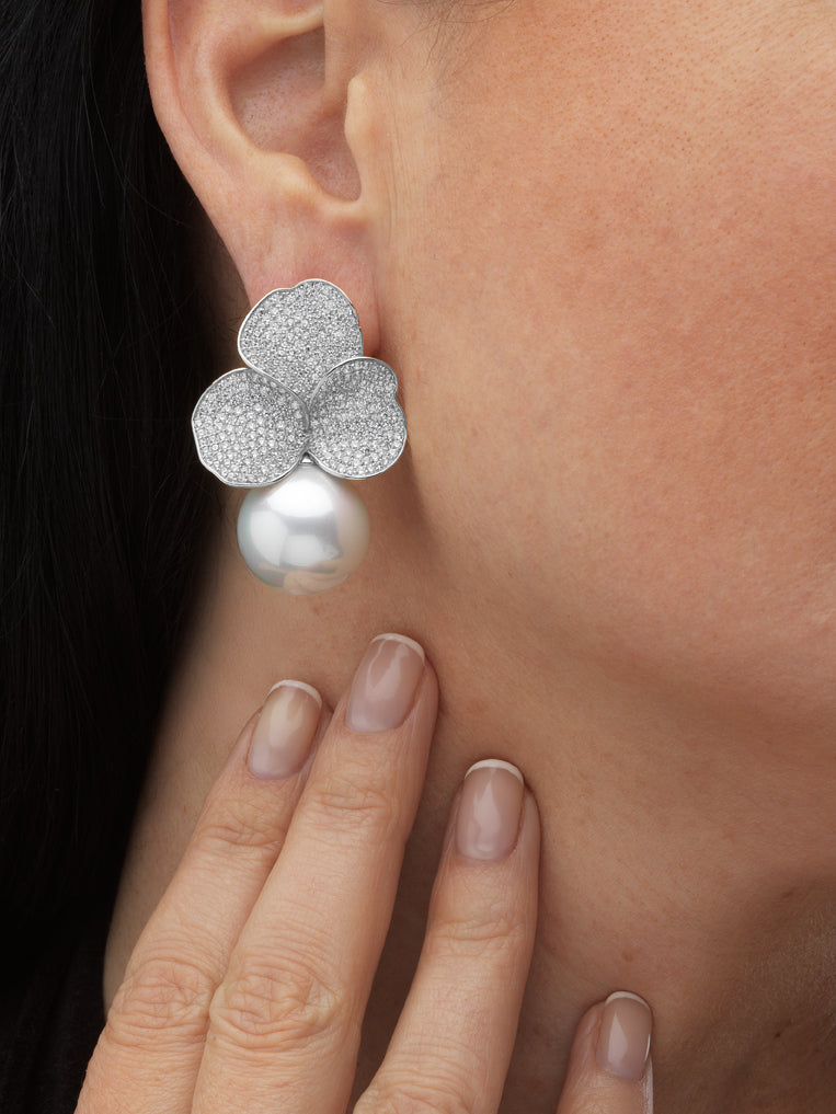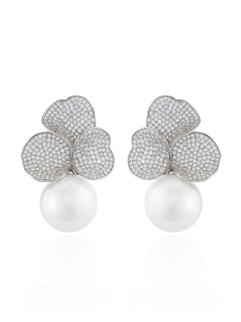 This refined pair features a graceful fusion of shimmering zircons and luminous cultured pearls, an ode to timeless beauty.