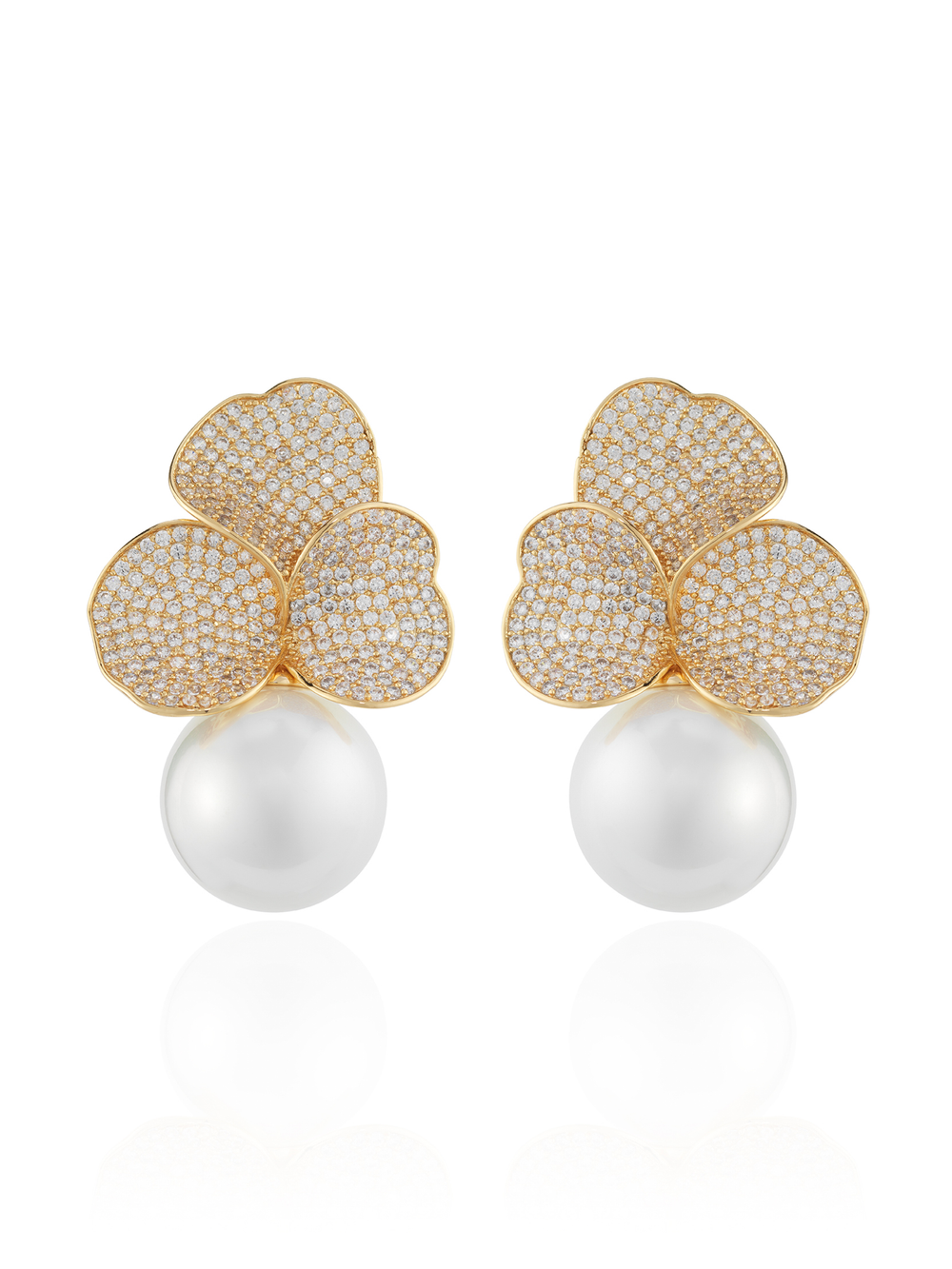 Gold-plated earrings with white zirconia and synthetic cultured pearls.