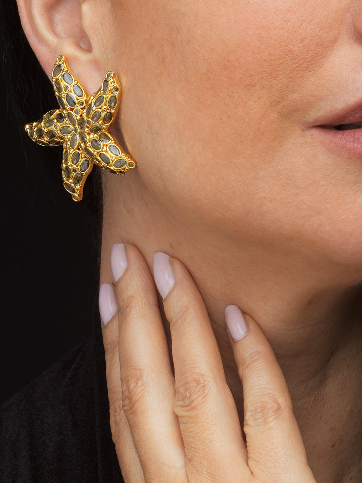 Inspired by the mysteries of the ocean floor, these earrings celebrate the starfish, a symbol of renewal, guidance, and resilience. The vibrant white zircons add a hint of vitality, reflecting the energy of nature and the ever-renewing rhythms of the sea.