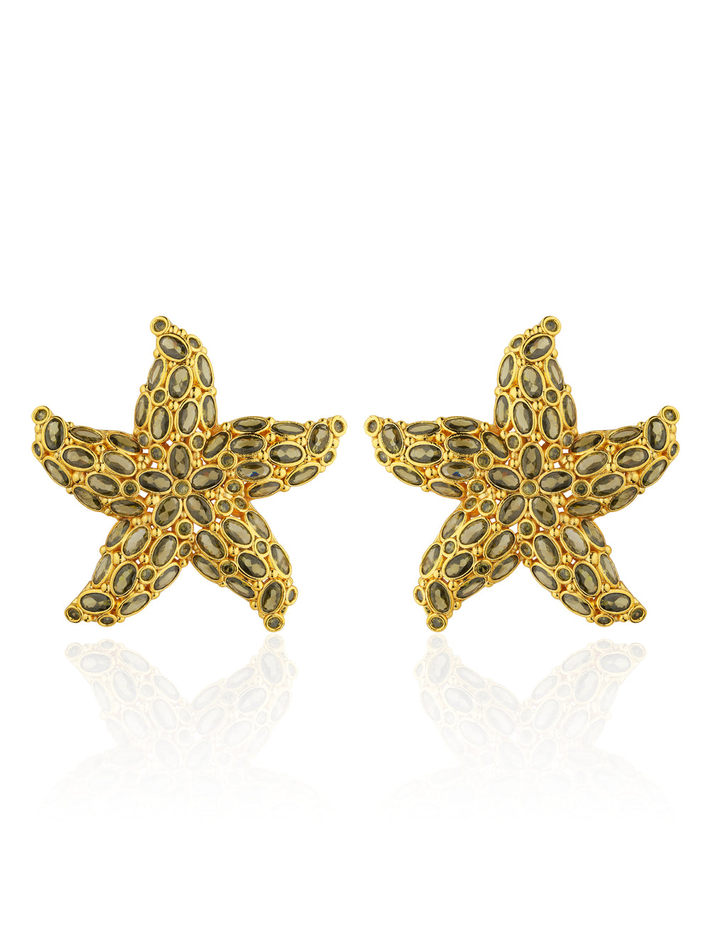 Starfish-cut stud earrings set with shimmering white zircons, crafted from alloy and plated in radiant 24-karat yellow gold.