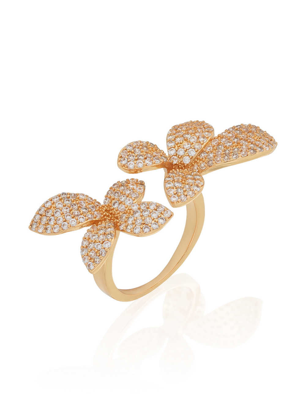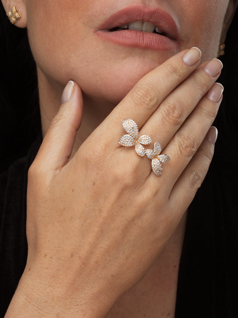 A delicate harmony of warmth and light, this rose gold-plated ring shimmers with pavé-set white zircons.